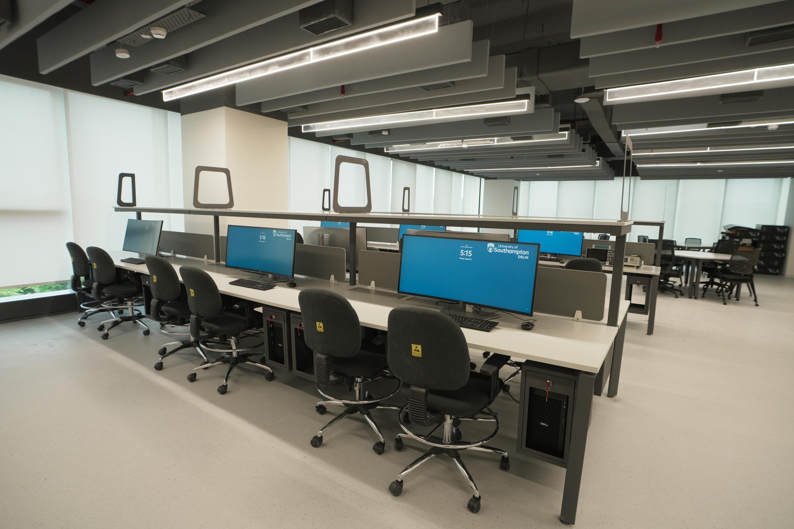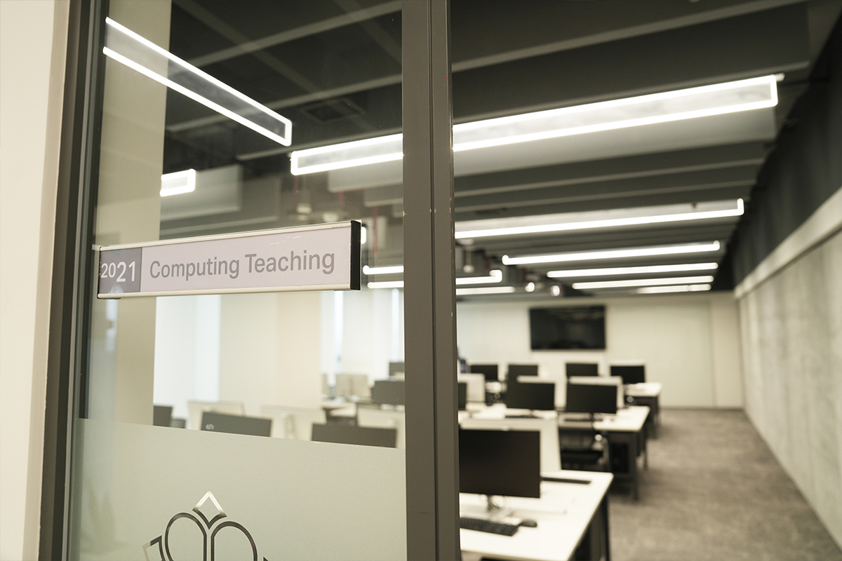 Our computing laboratory is a dedicated computer science facility for both individual and project work. It's a lively, communal space, where students will find support from both a programming help desk for programming-related questions, and IT help desk for other queries. The lab will be also be used for activities parallel to study, such as the Global Game Jam, as well as career events and workshops