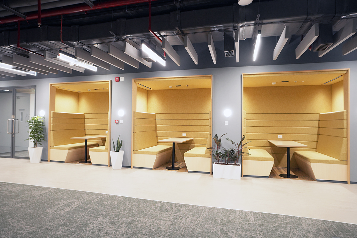 Choose from study pods and tables located throughout campus, collaborate on larger group work in informal spaces, book a private meeting room or visit the centrally located quiet study and reading room.